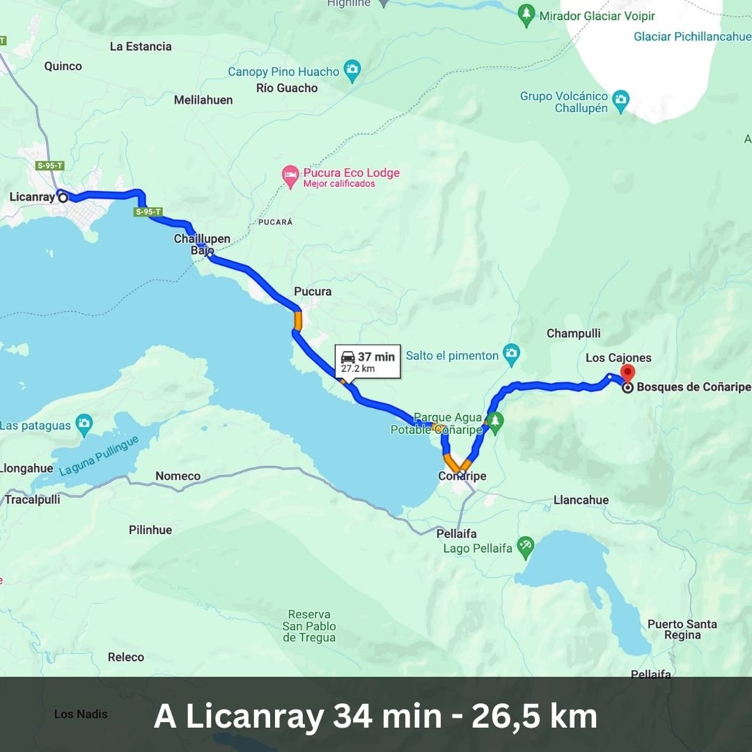 Para llegar a las parcelas: En el kilómetro 7 del camino Los Cajones, justo donde está el paradero, se dobla a la izquierda, se avanza unos 150 metros y a mano derecha e izquierda están las parcelas del proyecto Bosques de Coñaripe. Puedes también en el mapa (de abajo) presionar “Cómo llegar” para activar el GPS en el teléfono, ampliando el mapa.
